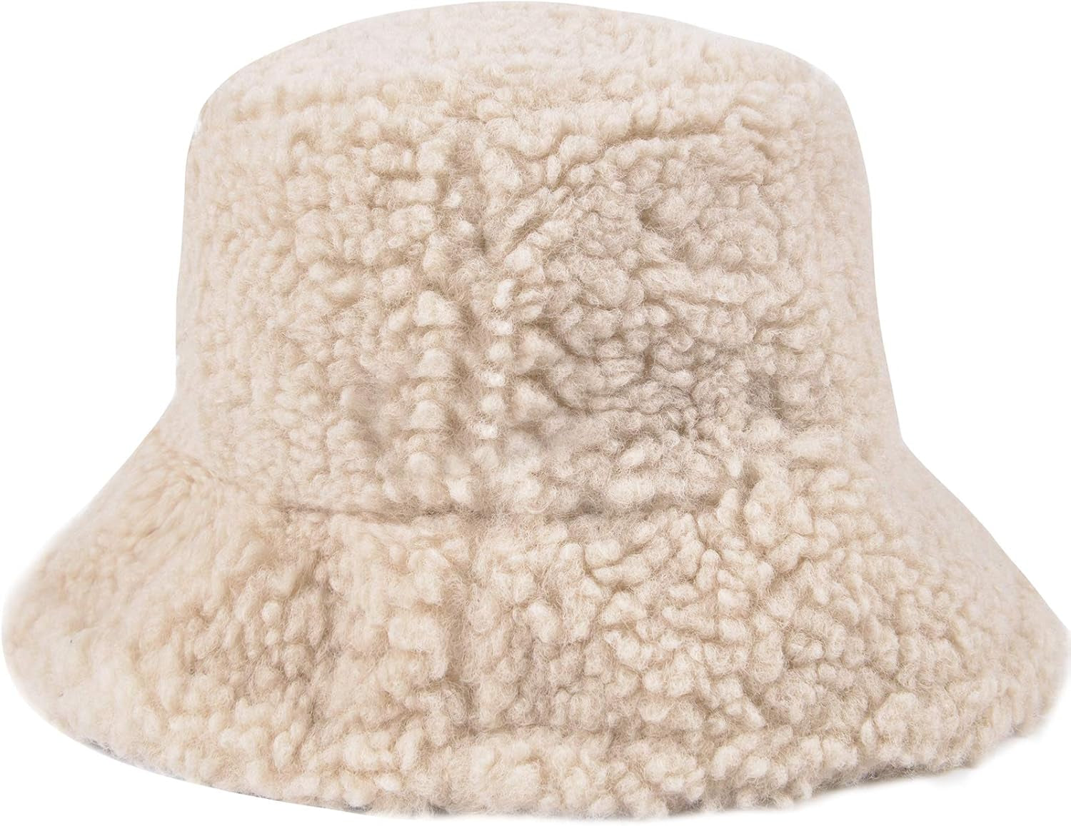 ChezAbbey Women's Faux Fur Bucket Hat Teddy Style Winter Warm Fisherman Cap Windproof Hats